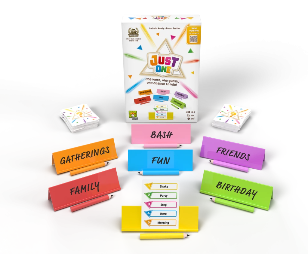 Just One es un juego ideal para jugar en grupo, donde todos colaboran para que un jugador adivine una palabra secreta. Parece simple, pero hay un giro: si dos pistas coinciden, ¡se cancelan! Así que cada palabra que elijas debe ser única, ingeniosa… y útil.